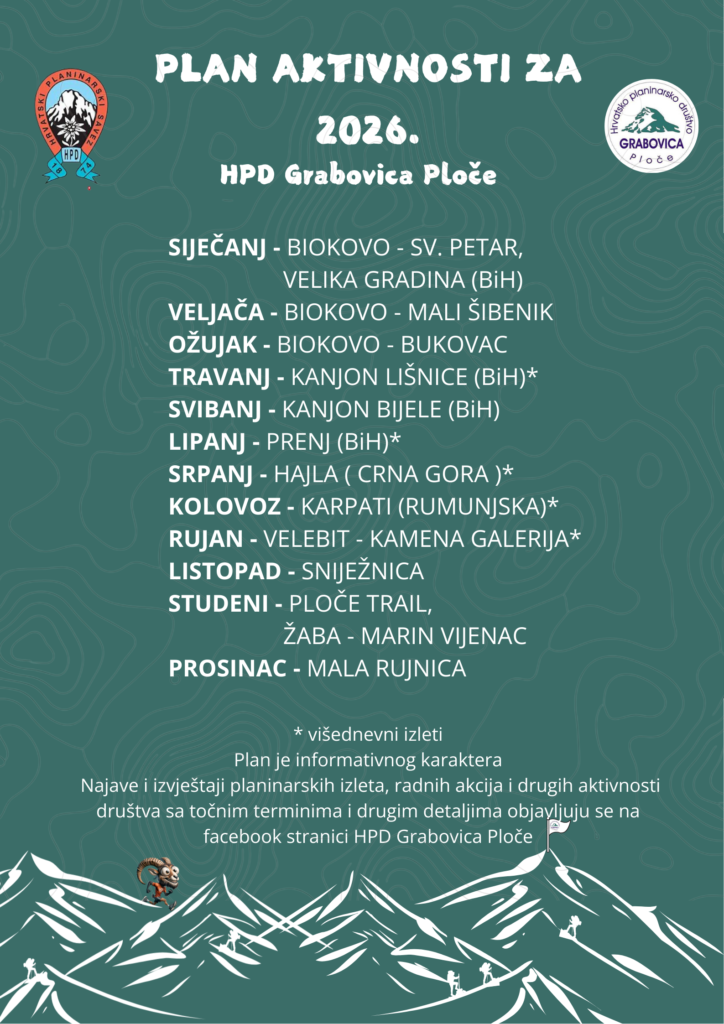 Najave održavanja planinarskih izleta, radnih akcija i ostalih aktivnosti s terminom i detaljima održavanja kao i izvještaje s istih Društvo objavljuje na facebooku https://www.facebook.com/Hpd.Grabovica/.