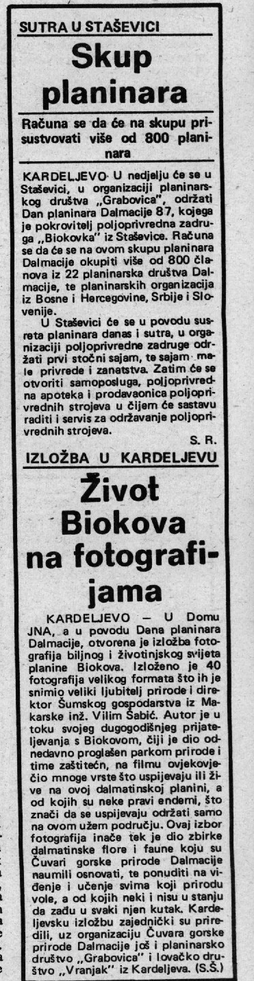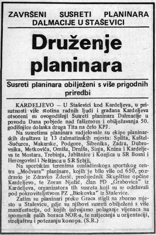 Nakon osnivanja društvo ima oko 300 članova, dosta je aktivno te su u vrlo kratkom vremenu ostvareni mnogi izleti i usponi diljem Hrvatske i Jugoslavije. 1985. godine povodom 40. godišnjice pobjede nad fašizmom i Dana općine Društvo organizira obilazak Biokovske planinarske staze u dvije etape.